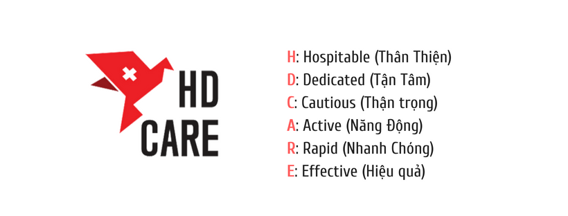 Đó cũng là những tiêu chí mà HD CARE luôn chú trọng, đặc biệt là H (Hospitable – Thân Thiện) và D (Dedicated – Tận Tâm) là 2 tiêu chí mà mỗi cá nhân nhân viên HD CARE đều luôn ghi nhớ. Thân thiện với bệnh nhân như chính người thân của mình, vì chúng tôi hiểu được: trong những hoàn cảnh như thế, ai cũng cần sự giúp đỡ, hay sự sẻ chia từ những chuyên gia, để có thể giúp được người nhà mình qua được khó khan. Tận tâm chăm sóc bệnh nhân là điều dĩ nhiên khi làm ngành y. Lương y như từ mẫu.
